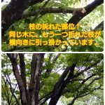 | 2023/08/10 | 森の里2丁目バス停前の木が昨夜の雨で枝がおれていました。 幹にも大きな亀裂が見 | ![]() |