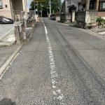 道路の歩道の白線が薄れてる。
