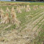 | 2020/11/10 | 稲刈りの後の田んぼで藁を干しています。同じ形がいくつも並んでいてかわいらしい風景 | ![]() |
